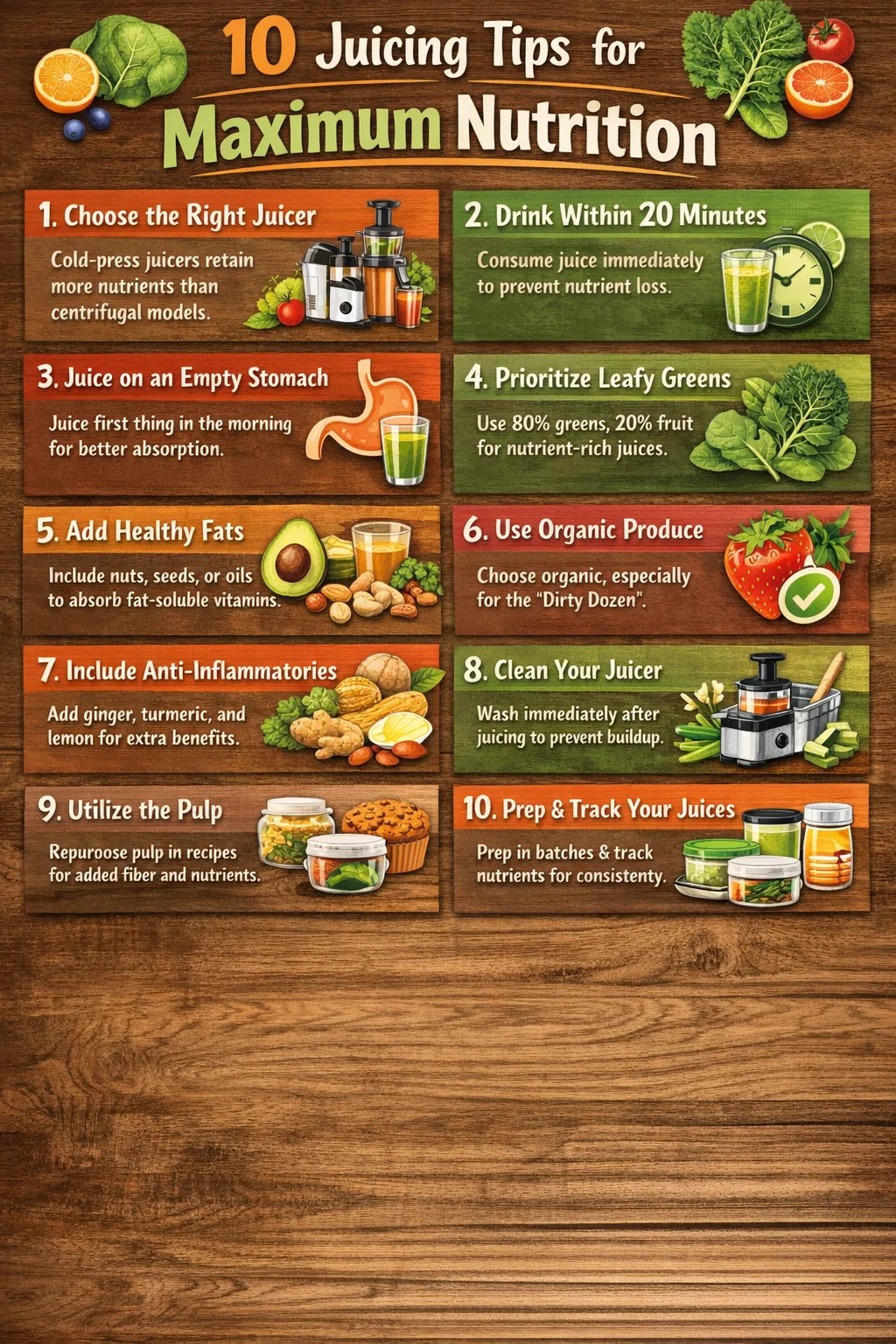 If you want to get the most nutrition out of every glass, the way you use your juicer matters just as much as what you put into it. Cold-pressing at low speed, juicing on an empty stomach, and drinking within 20 minutes of juicing can increase nutrient absorption by a significant margin. These are not minor tweaks — they are the difference between a glass of sugary liquid and a genuinely functional health drink. The ten tips below are grounded in food science and real-world juicing practice, and they apply whether you use a centrifugal juicer, a masticating juicer, or a twin-gear press.