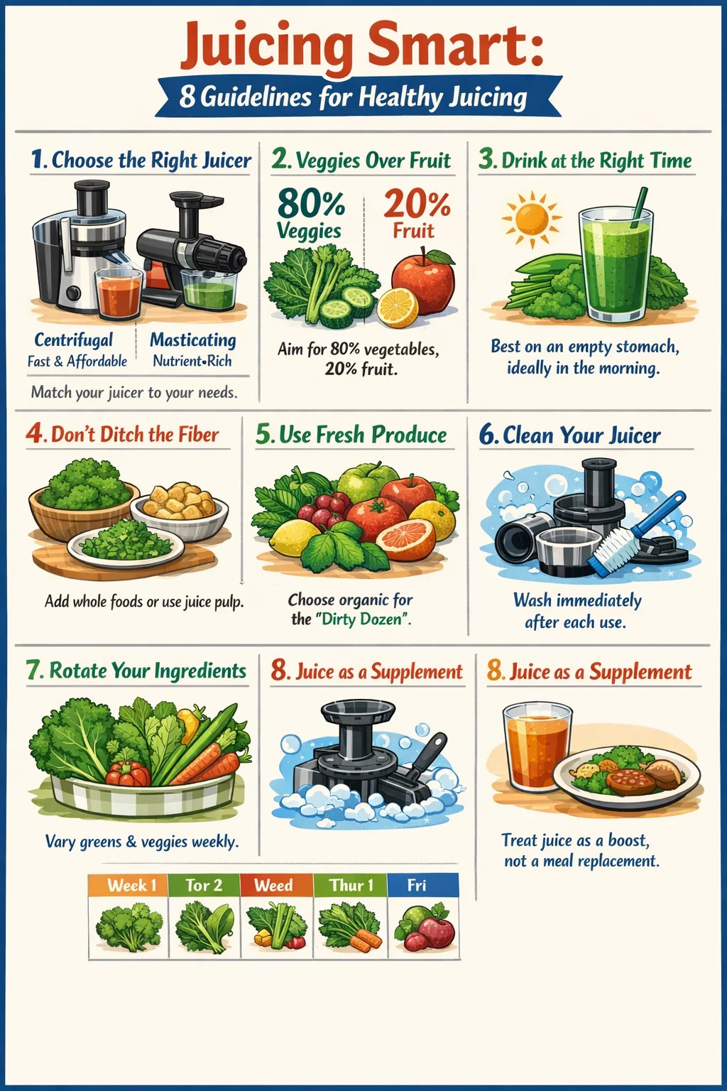 If you want a straightforward answer: juicing works best when it supplements a balanced diet rather than replacing whole foods. The right juicer, the right ingredients, and a few smart habits make the difference between a genuinely healthy routine and one that quietly loads you with sugar. The 8 guidelines below cut through the noise and give you a practical framework you can actually follow.