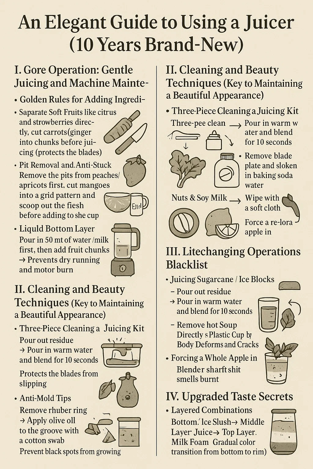Here is an elegant guide to using a juicer, combined with practical experience, to keep your machine looking brand new even after ten years: